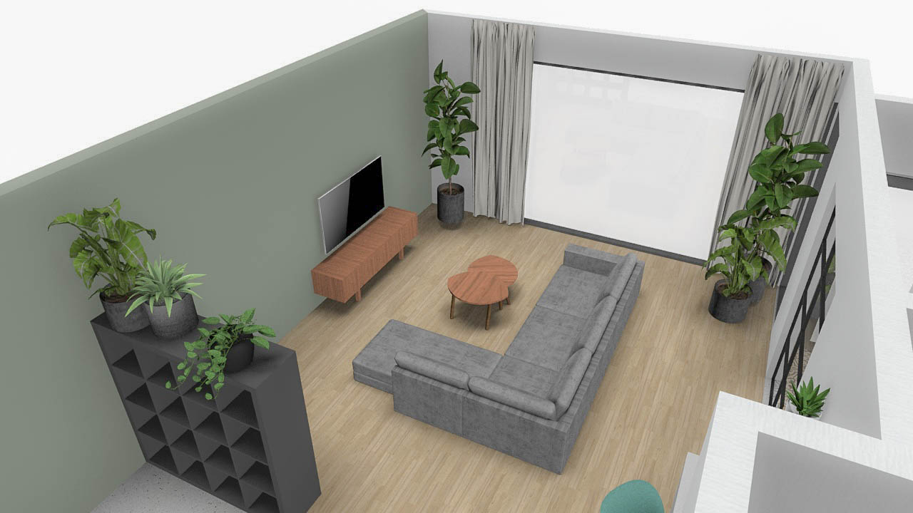 Ik maakte voor hen een 3D voorstel voor het gelijkvloers van de woning en paste hun bestaande meubels hierin toe.  Daarnaast werd een toekomstgericht voorstel uitgewerkt met maatwerk en enkele aanpassingen aan de keuken.